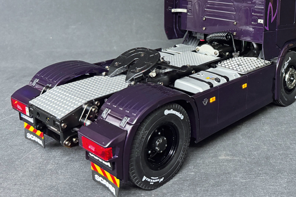 Die Band Deep Purple ist eine Legende. Wann spricht man von einer Legende? Wenn jemand oder etwas durch herausragende Taten, Eigenschaften oder eine besondere Bedeutung unvergessen bleibt. Bei Deep Purple steht das außer Frage. Die Marke Scania baut seit 1902 Lkw in Schweden. Über ein Jahrhundert. Das ist auch schon legendär. So legendär, dass Tamiya mittlerweile die dritte Variante des 770S auf den Markt bringt. Und mit der aktuellen Ausführung ein besonderes Modell, mit reichlich Zubehör am Start. Ein Abschlussmodell der Reihe? Man weiß es nicht. Trotz allem Grund genug, diesem Modell entsprechend seiner Ausführung das passende Erscheinungsbild zu geben. Nämlich in dunklem Lila, „deep purple“ eben. Und damit schließt sich der Kreis der Legenden.